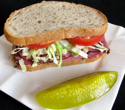 Pastrami, Tomato and Coleslaw on Rye
