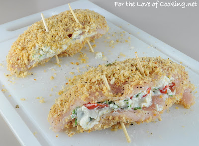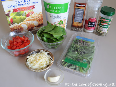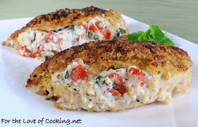 Panko Crusted Chicken Stuffed with Ricotta, Spinach, Tomatoes, and Basil: Recipe and photos by For the Love of Cooking.net- 1 cup of low fat ricotta cheese