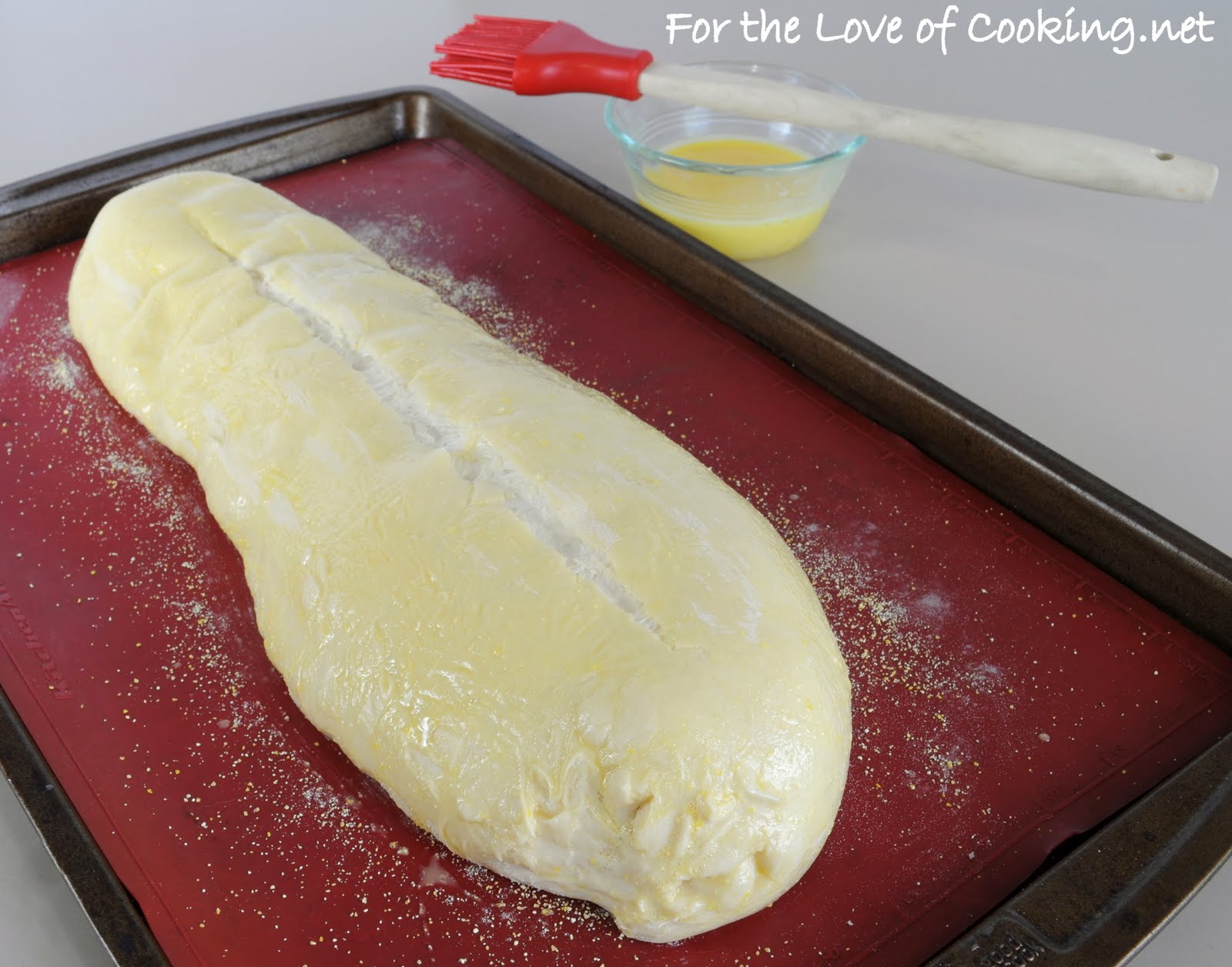 Cover with a cloth and let rise, until doubled in size, about 40 minutes. Preheat the oven to 375 degrees. Combine the egg with the water and beat until thoroughly mixed. Brush the egg mixture on the top of the loaf. Carefully slice a long single cut down the center of the loaf with a very sharp knife. Place the silpat mat onto a baking sheet.