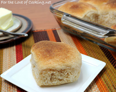 We had friends come over to our new house for dinner, and I wanted to make a batch of fresh dinner rolls to pair with the dilly bean stew with cabbage and frizzled onions, and a Parmesan chopped salad. I used my whole wheat dinner roll recipe and decided to add two heads of roasted garlic to the dough. The rolls were light & fluffy, and the roasted garlic gave the rolls a nice, subtle garlic flavor that we all enjoyed.
