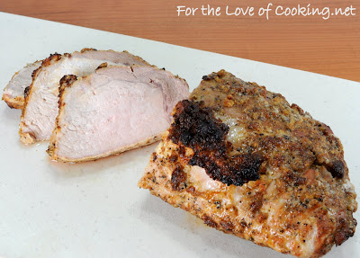 I had a pork top loin roast to cook up so I decided to try cooking it like I do my prime rib. I mixed my favorite prime rib seasoning (which happens to be amazing on pork too) with lots of minced garlic and olive oil. I rubbed the mixture all over the pork before roasting it in the oven at a very high temperature to form a nice crust on the outside then I turned down the oven and continued cooking until it was done. The pork turned out absolutely delicious! I will be making this again and again in the future. The seasoned garlic crust was flavorful and delicious while the pork was tender and so juicy. We literally cut our pieces of meat with a fork. My kids gobbled it up and my husband and I both thought it was amazing.