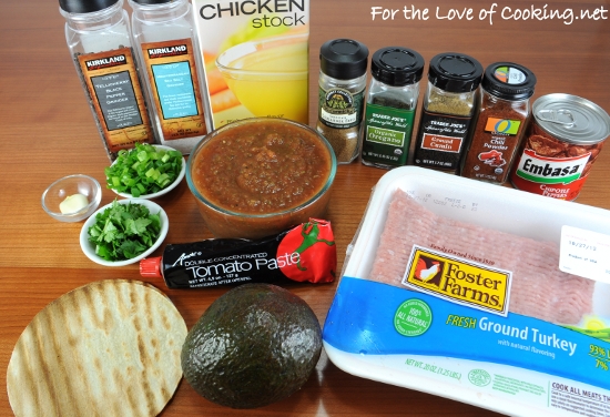 Combine the ground turkey, green onion, cilantro, cumin, chili powder, oregano, coriander, garlic, tostada shells, and sea salt and freshly cracked pepper, to taste, in a bowl. Using your hands, roll them into little balls.