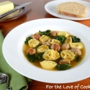 Cheese Tortellini Soup with Turkey Italian Sausage and Kale